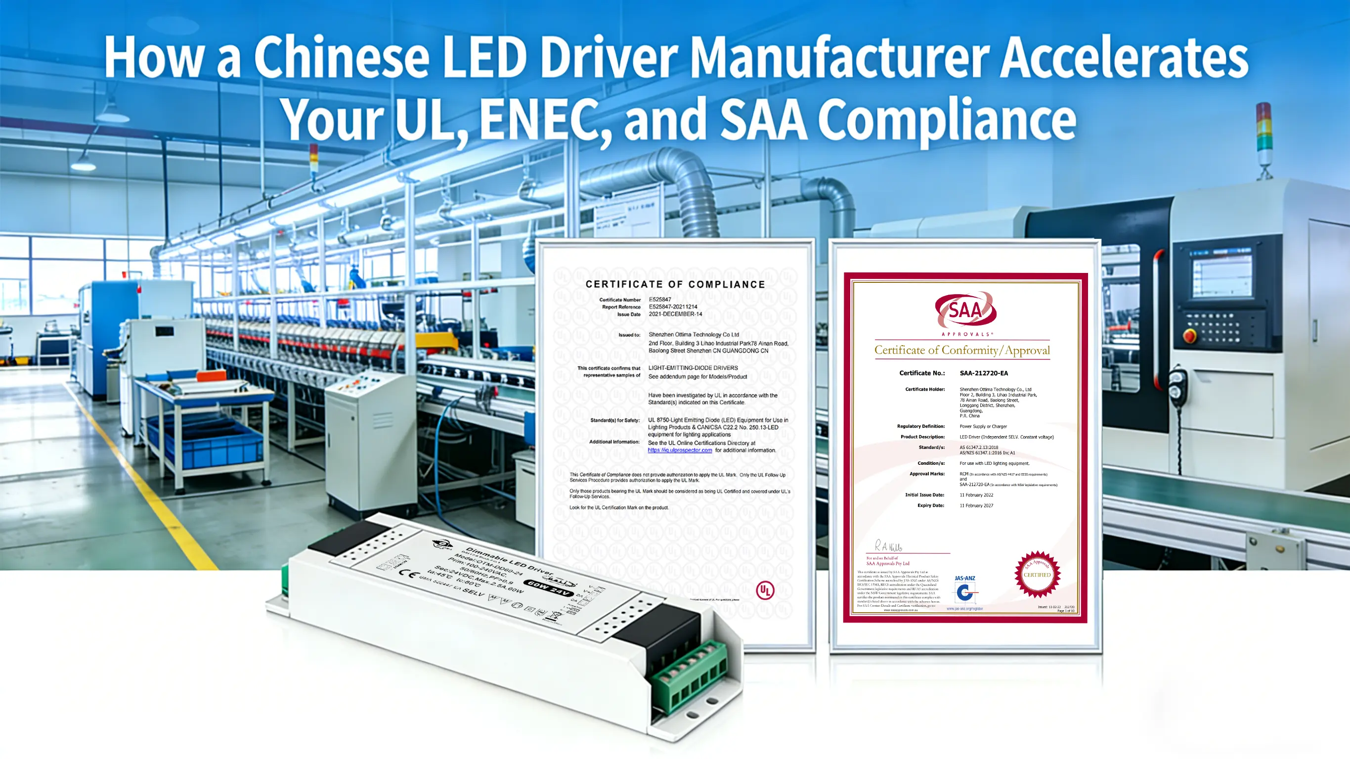 As an experienced Chinese LED driver manufacturer, we understand these pain points deeply. This article moves beyond standard discussions to offer a "Certification Accelerator" strategy from a manufacturer's perspective, demonstrating how we use pre-compliance design and in-depth technical documentation to help you quickly and securely break through the major market barriers of UL, ENEC, and SAA.